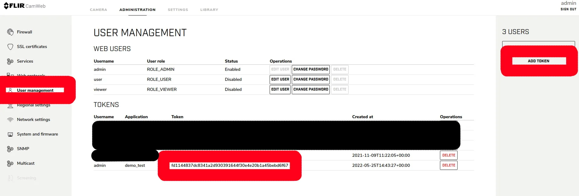 Select User management sub-tab and ADD Token.