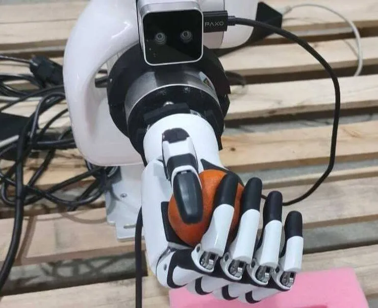 xArm5 is a five DOF arm, which is manufactured by UFactory and its official catalog [Ref.] states that due to geometric constraints, the arm behaves like a four DOF arm while motion planning in some cases. Its reachability is limited to 0.7 metres and it can support a payload of up to three kilograms. The ROS drivers and software development kit of xArm5 are shared on github [Ref.] . Intel realsense d405 depth camera is a short-range stereo camera with a suitable range in between seven to fifty centimeters with depth, RGB, and point cloud information [Ref.] . Its ROS drivers and its model descriptions have been shared on GitHub [Ref.] and they will be used for integrating it with xArm5. The right hand gripper of Inspire Robotics has six DOF and it can support up to ten to fifteen Newton weight, which is approximately in between on e and two kilograms [Ref.] . the model description has been provided on its official website. The catalog describes twelve joints in the hand, with two per finger/thumb, and the joint motion is mimicked within a finger. Thus, the finger movement is controlled in one axis and the thumb can move around two axes. The technical specifications provide a brief glimpse about the capabilities and the challenges for integration and while performing the manipulation task. In summary, the combined setup has a workspace reachability of around 0.7 meters with limited four DOF for motion planning with IK solvers in space. The holding capacity of the fruit is limited by the finger load-bearing limit for safe operation. The suitable range for the camera and object detection task is within the workspace limits, however, it would not be covering the whole workspace, so the complete integration would answer how the system behaves as one.