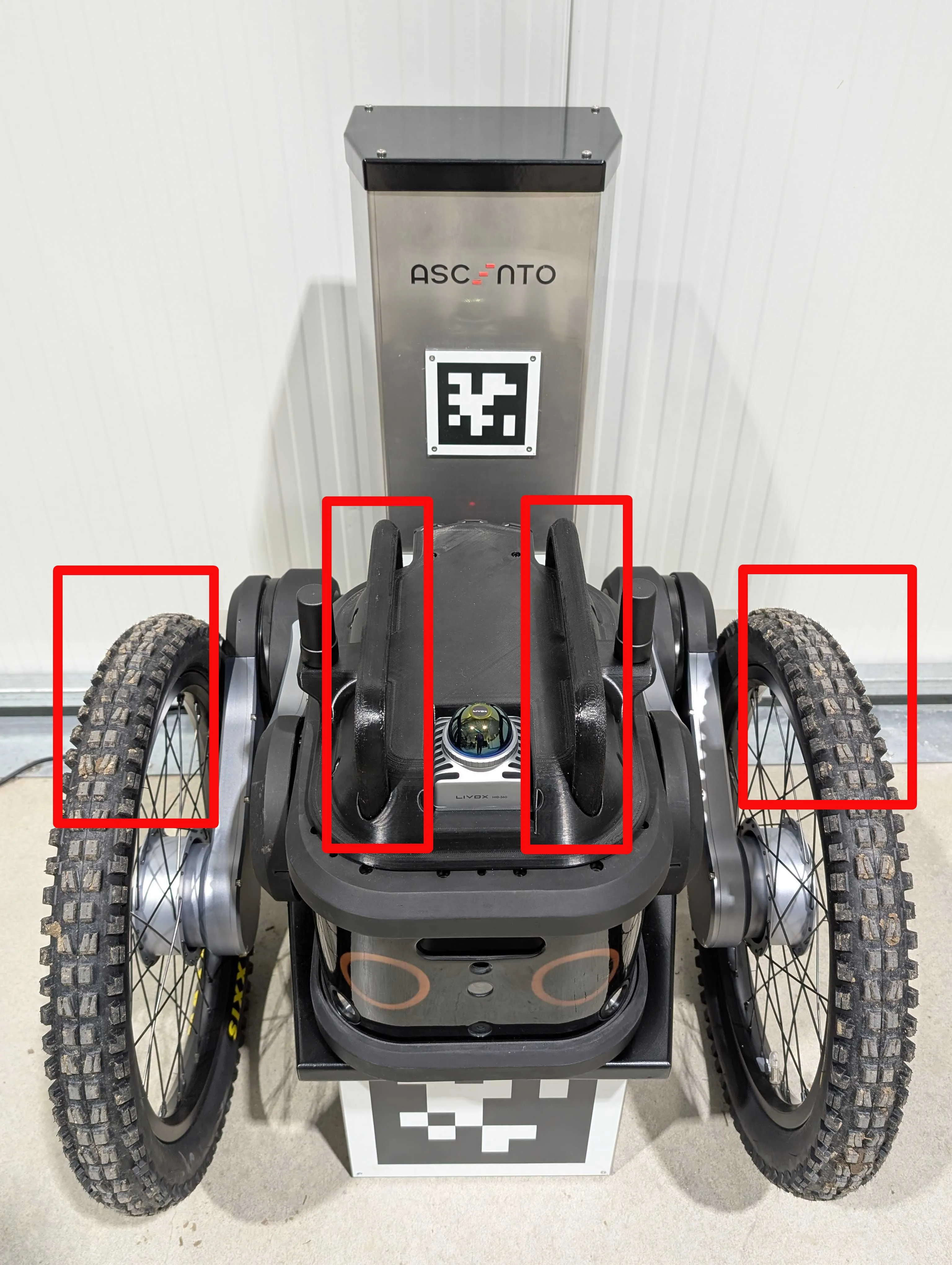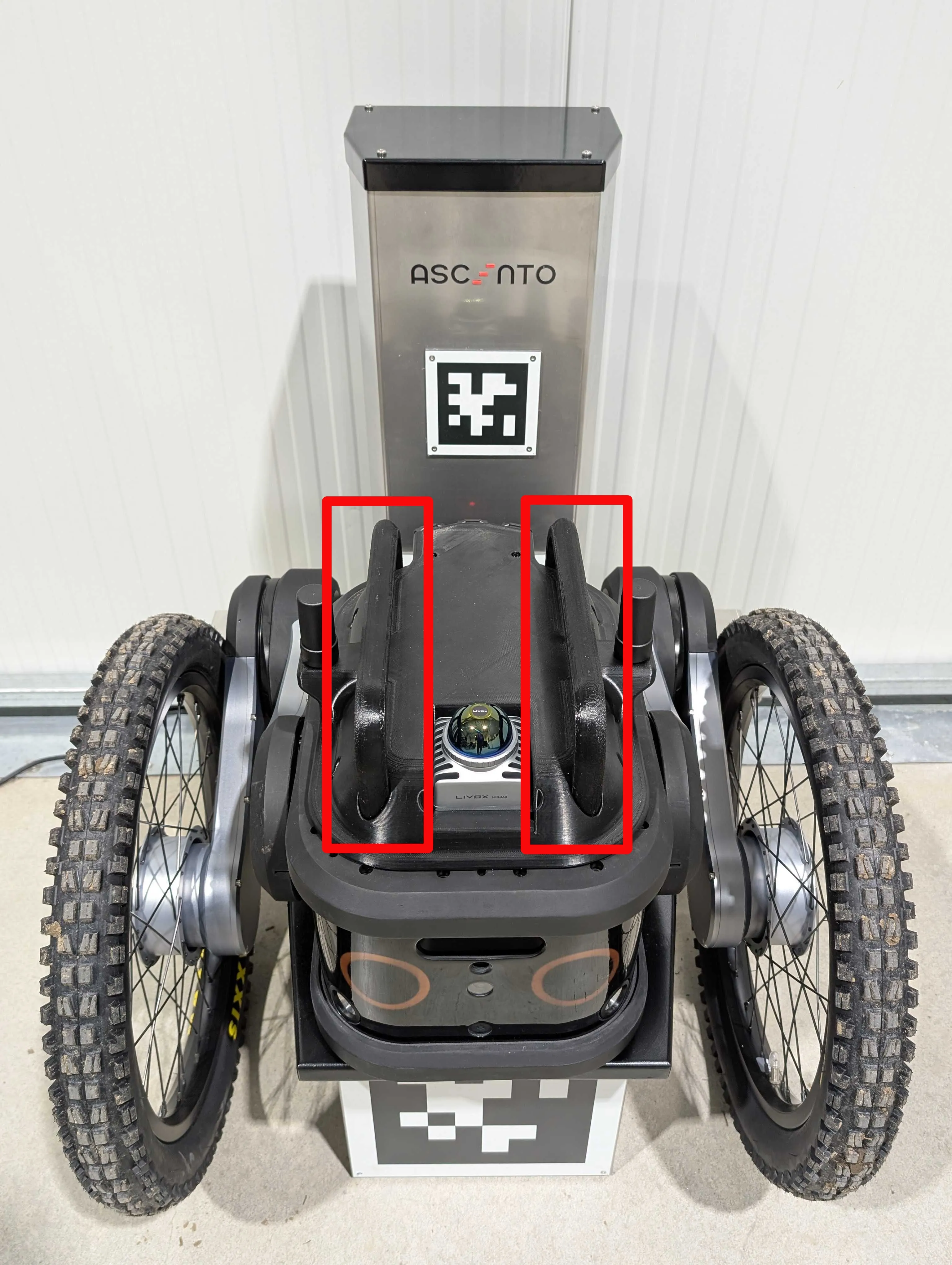 When transporting the Ascento robot by yourself, it is crucial to handle it properly to avoid injury or damage to the robot. The robot should be lifted using the designated handles located on the top of the main body. These handles are specifically designed to help distribute the robot’s weight evenly, allowing you to carry it safely and with greater ease. Ensure that you maintain a stable posture and use both hands to securely grip the handles while lifting.