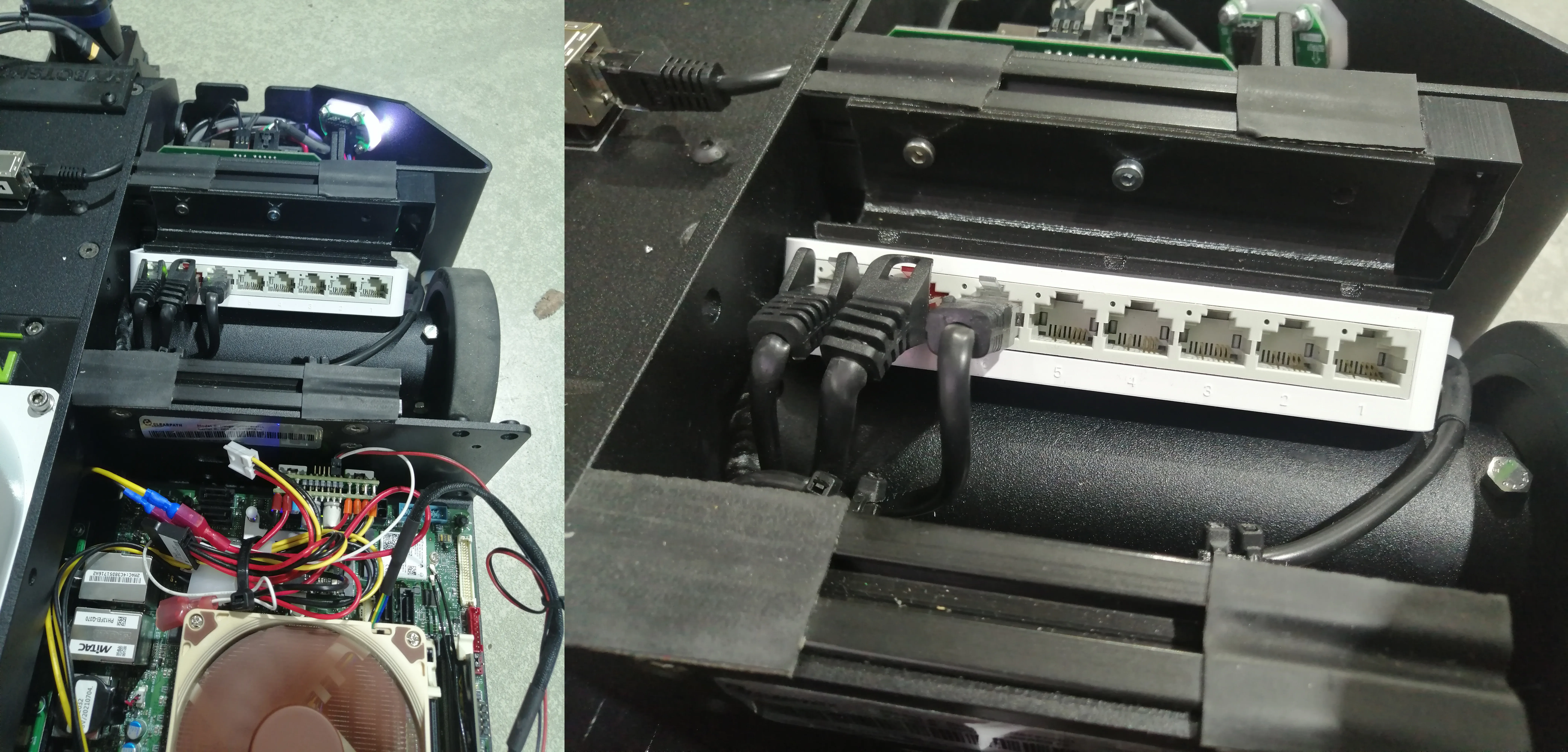 Please be aware that the primary onboard PC communicates with all sensors (MCU, Xarm, Hokuyo) and their drivers through the switch. Avoid unplugging any Ethernet cables, as doing so could potentially disrupt the robot’s functionality.