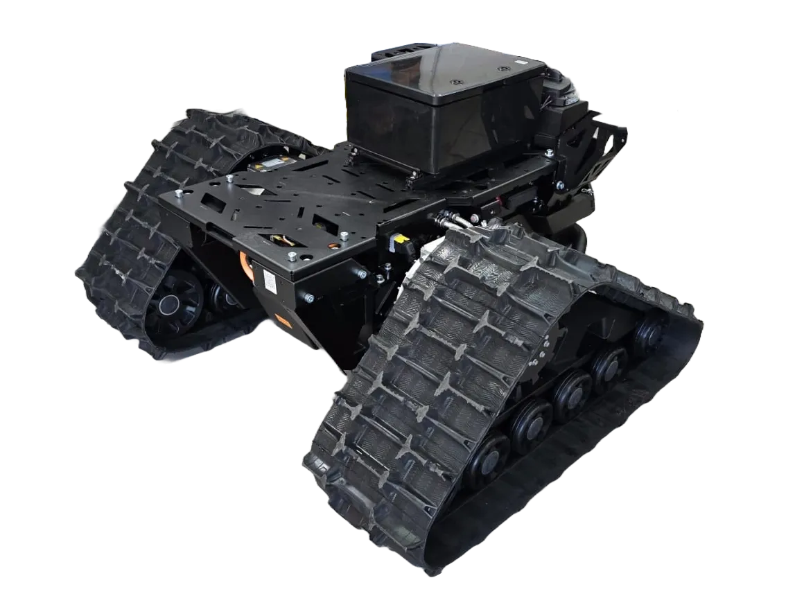 The MYBOTSHOP ROVO3 is a rugged tracked robot platform designed for autonomous mobile robot (AMR) applications. The tracked chassis provides superior terrain traversal capabilities compared to wheeled platforms, making it ideal for outdoor environments, rough terrain, and challenging surfaces.