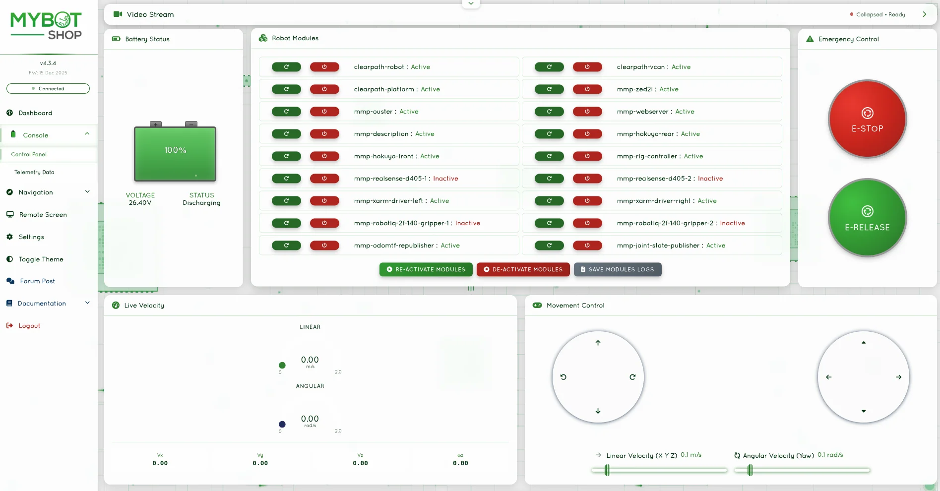 Pre-configured action buttons (adaptable to new ROS2 services)